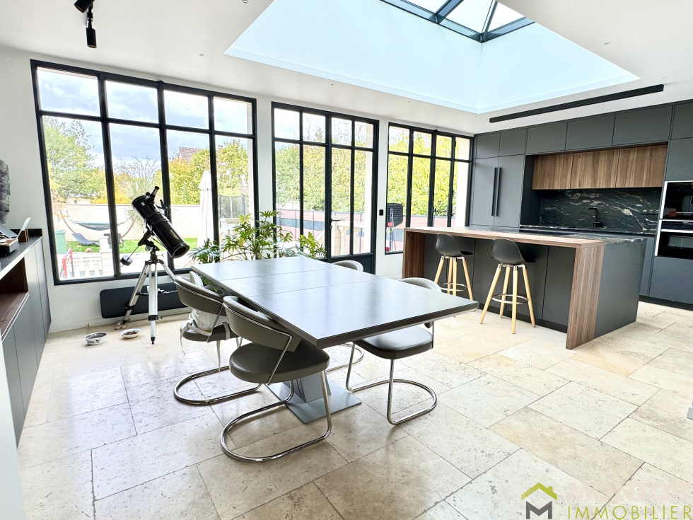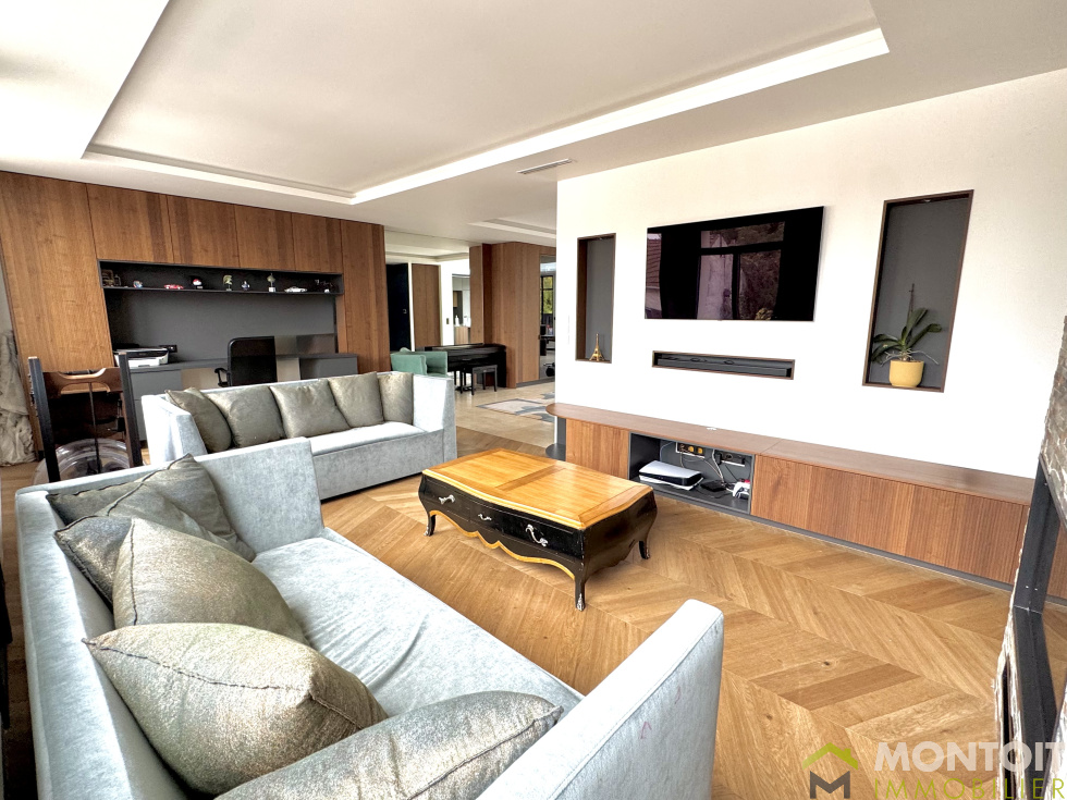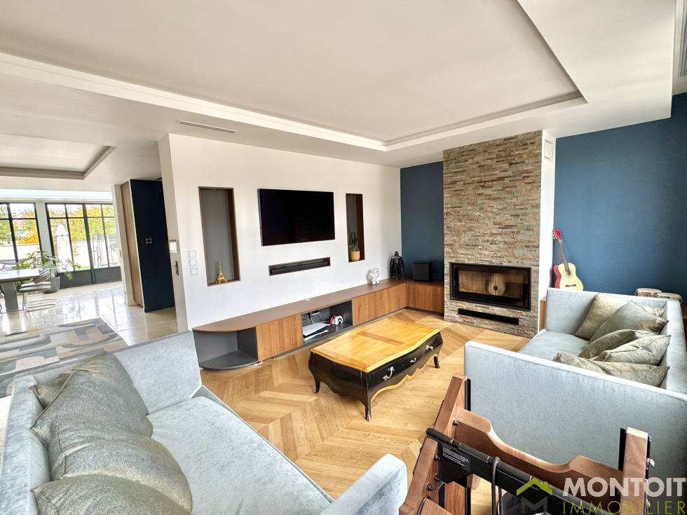 Charmante maison entièrement rénovée avec goût, offrant plus de 220 m² habitables (280m² utiles) sur un terrain d'environ 300 m², idéalement située à proximité du centre-ville, des commerces et des transports. Élevée sur un sous-sol total, elle comprend un grand garage (porte et portail électriques) avec borne de recharge, une belle entrée avec de nombreux placards, une grande buanderie et un WC. Une salle de cinéma et une cave complètent ce niveau. A l'étage, un espace de vie d'environ 80m² composé du séjour, salon, salle à manger ainsi que sa cuisine entièrement aménagée équipée donnant accès à une terrasse conviviale et au jardin. Un WC et une salle d'eau complètent ce niveau. À l'étage, un palier dessert trois chambres de 11m², un dressing, une salle de bains et des WC séparés. Combles aménagés en une suite parentale avec salle d'eau et wc. La maison bénéficie de prestations haut de gamme : volets roulants électriques, fenêtres aluminium, climatisation réversible, chauffage électrique, poele à granules, portail et borne électriques. Un bien rare à visiter sans tarder !