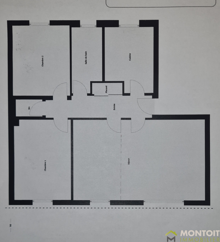 APPARTEMENT 3/4 pièces de 65m² environ, en double exposition Est/Ouest composé d'une entrée desservant un salon et salle à manger (1 chambre à l'origine), une cuisine indépendante, dégagement avec placard menant à une salle de bains (avec fenêtre), 2 chambres et un wc indépendant.