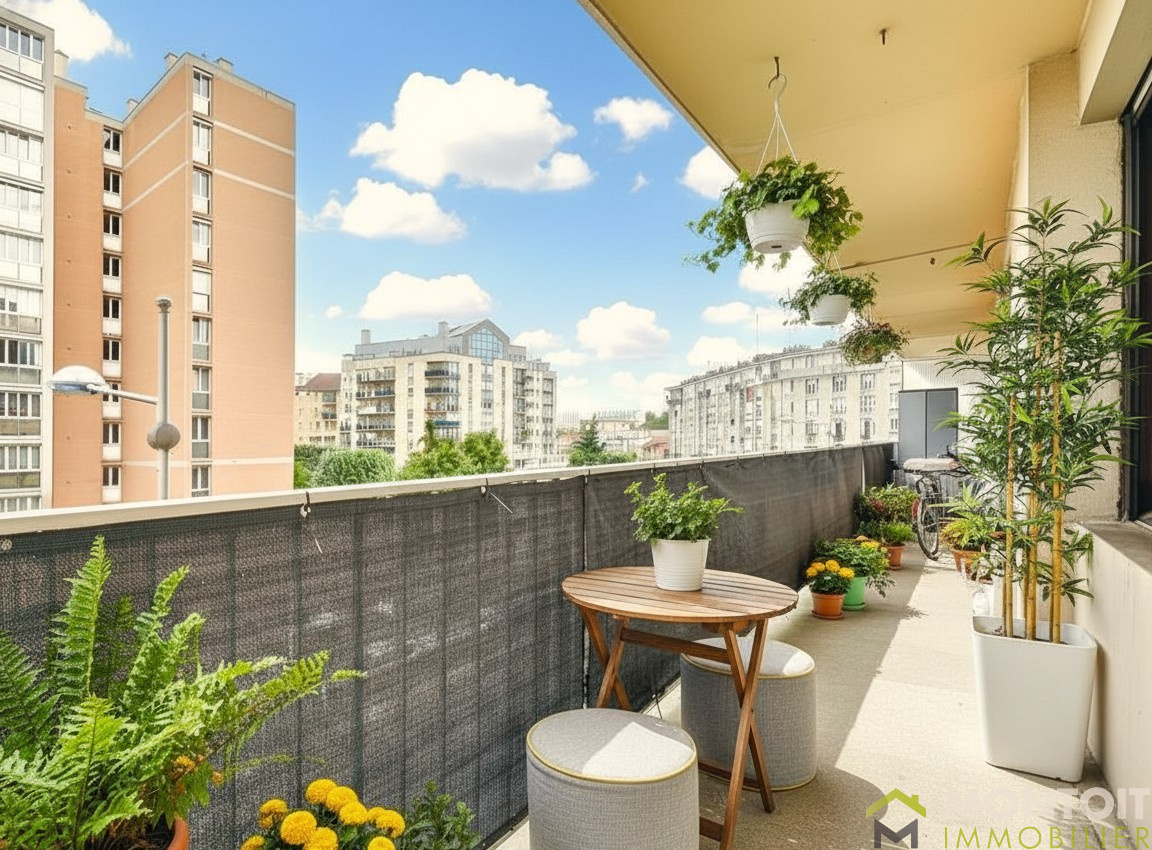 Il se compose d'une entrée avec placard, d'un agréable séjour donnant sur un balcon terrasse (de 8,54m²), d'une cuisine séparée (intégralement refaite en 2019) aménagée et équipée, également avec accès au balcon, d'un dégagement desservant deux chambres, une salle d'eau (intégralement refaite en 2019) et un WC séparé.