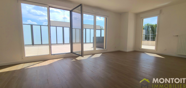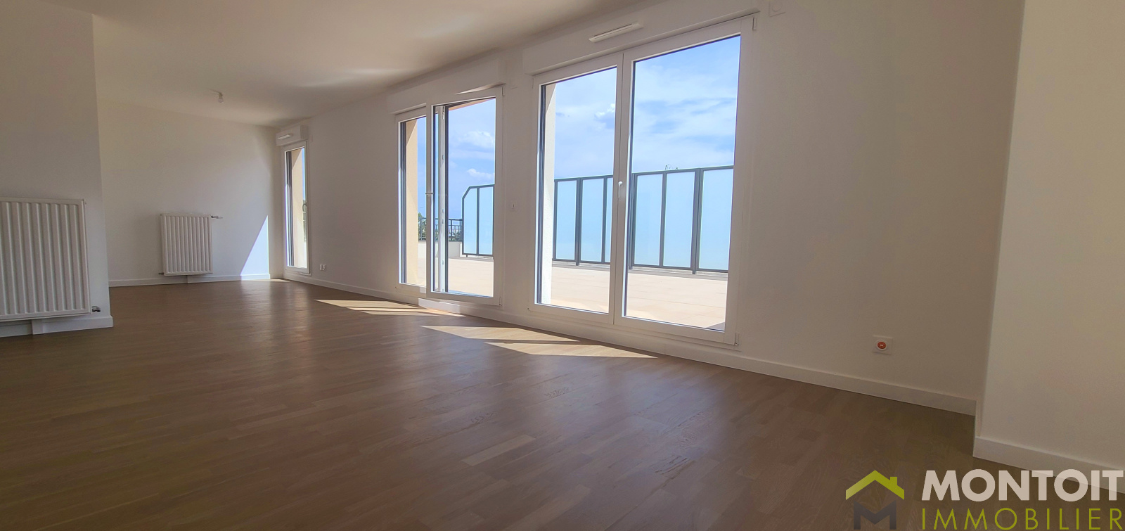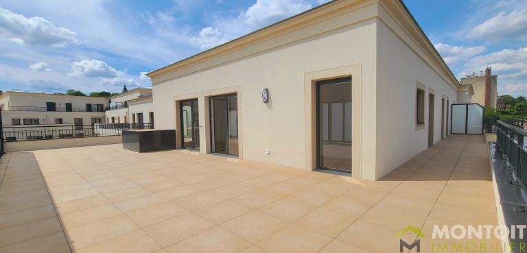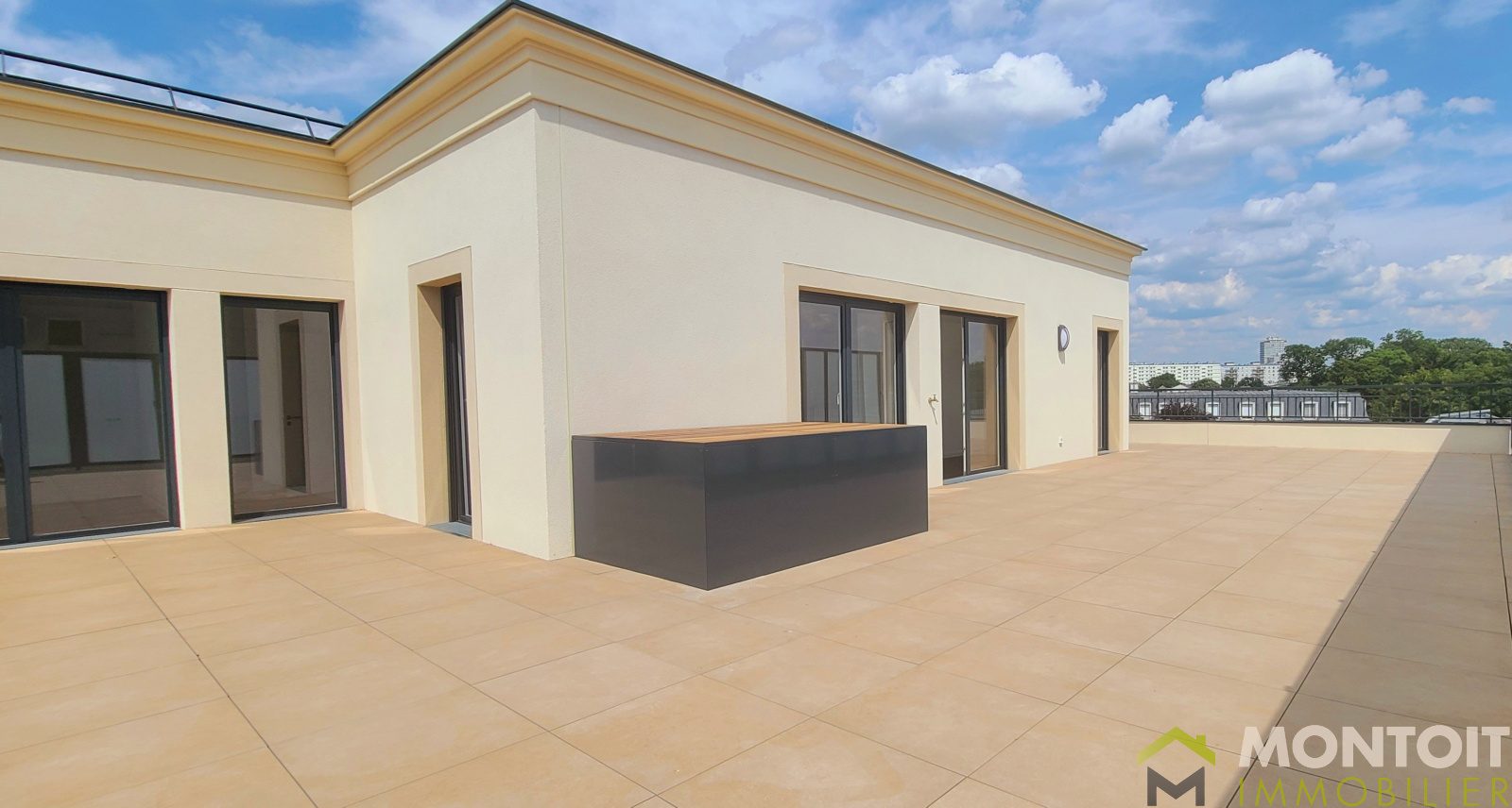 Appartement de 104 m² et sa superbe terrasse de 108m² au dernier étage (3/3) avec ascenseur, comprenant une entrée avec placard, un dégagement menant à une belle pièce de vie de 34m² , une cuisine indépendante à équiper (possibilité d'étre ouverte sur séjour), le tout donnant sur une magnifique terrasse de 108m² en triple exposition (Sud / Ouest et Est) bordant tout l'appartement.