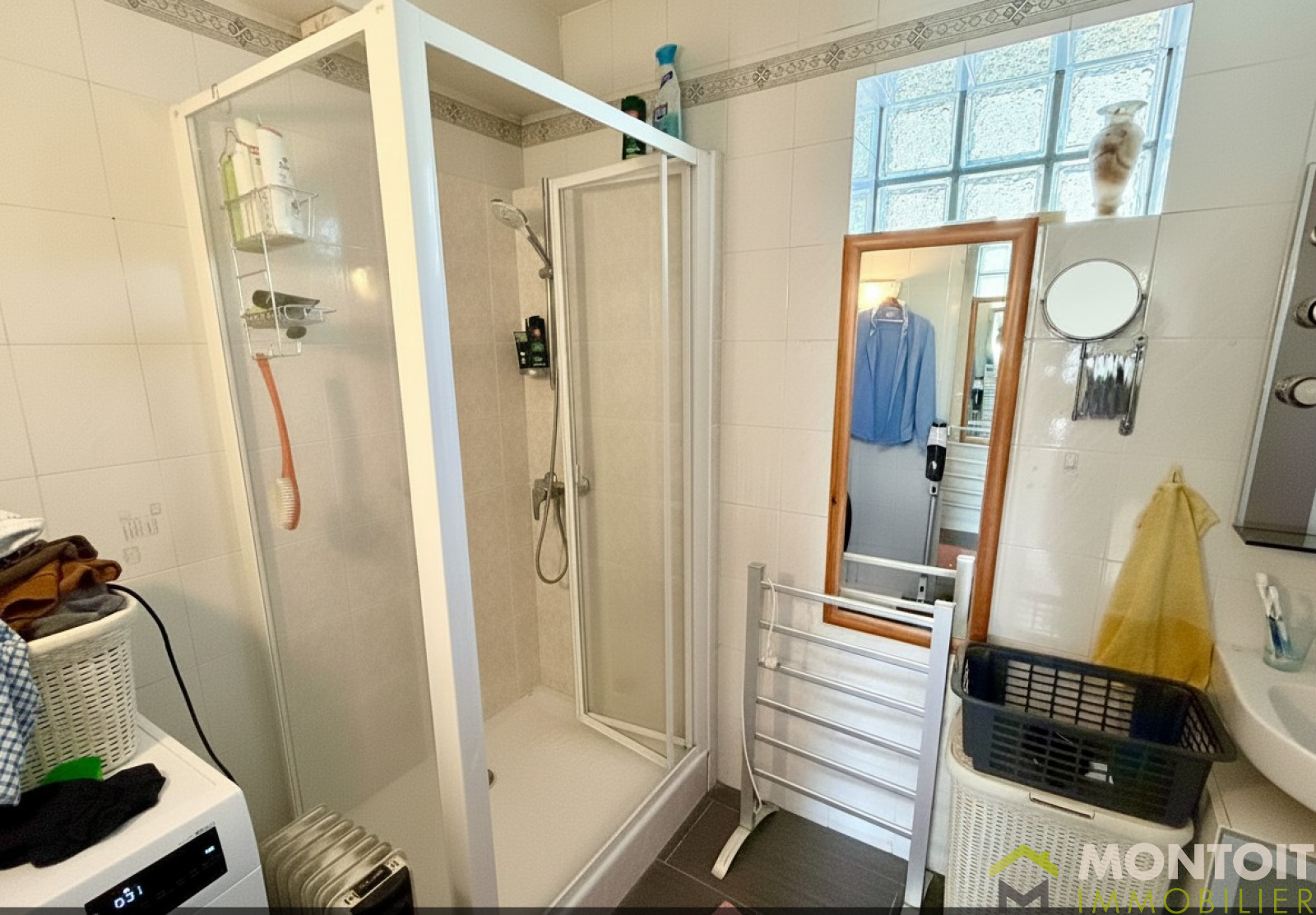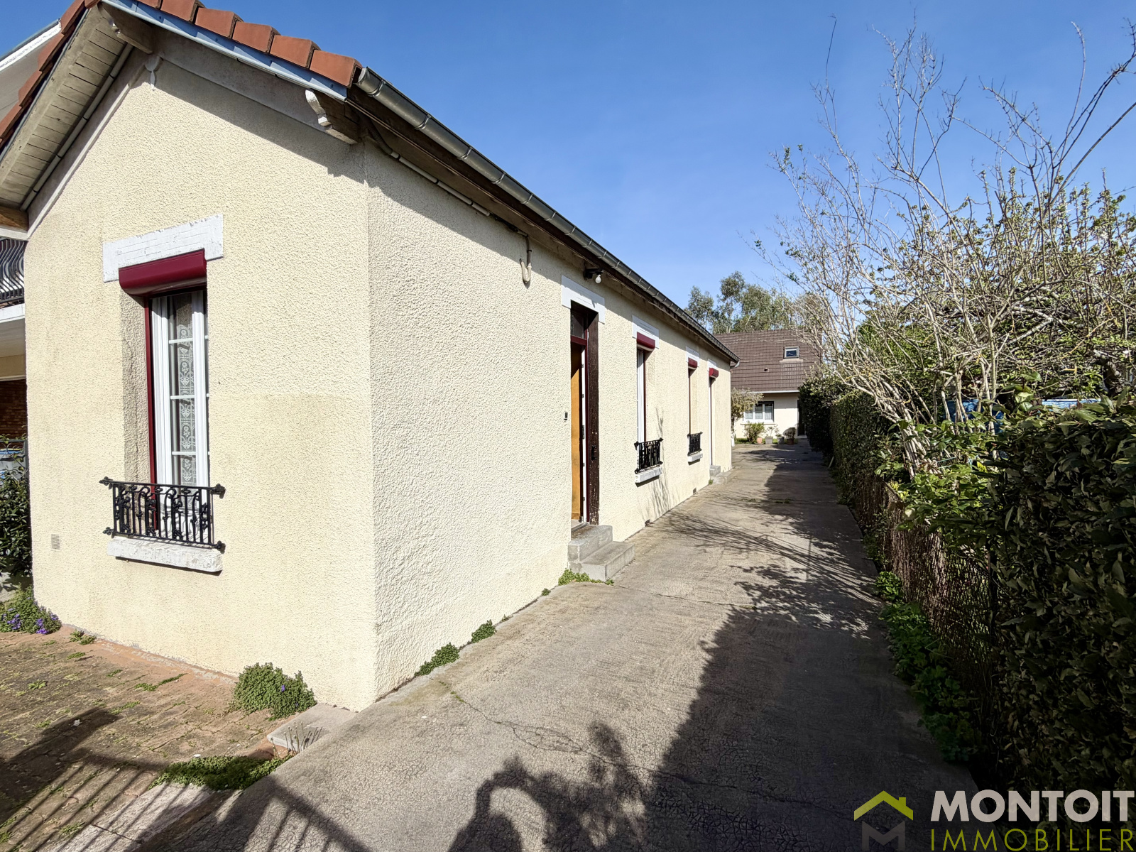 Une maison plain-pied d'environ 55m² avec entrée desservant une cuisine séparée, un séjour avec coin nuit, une salle de bains avec wc et en sous-sol deux caves.