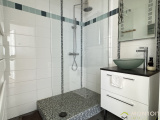 À l'étage, dégagement desservant trois chambres avec placards dont une avec sa salle d'eau, une autre salle d'eau et un WC séparé.
