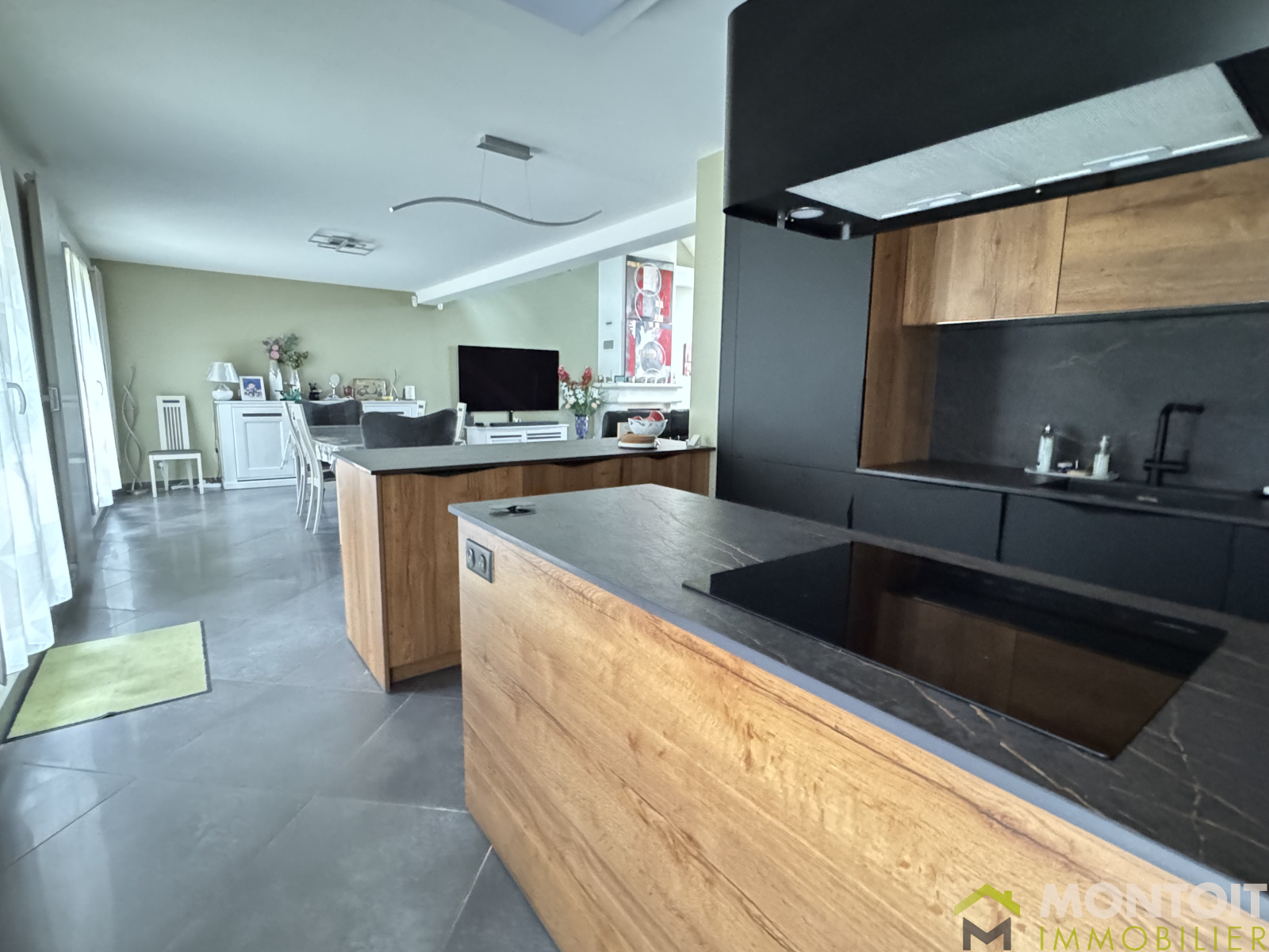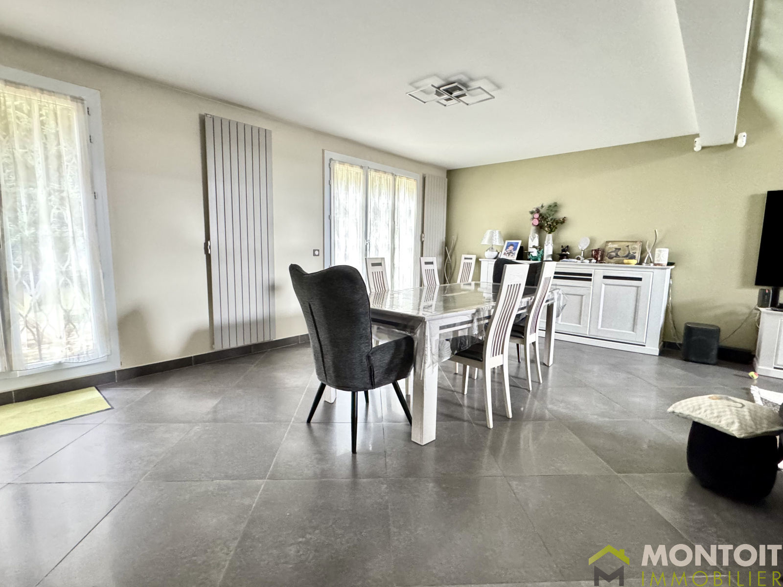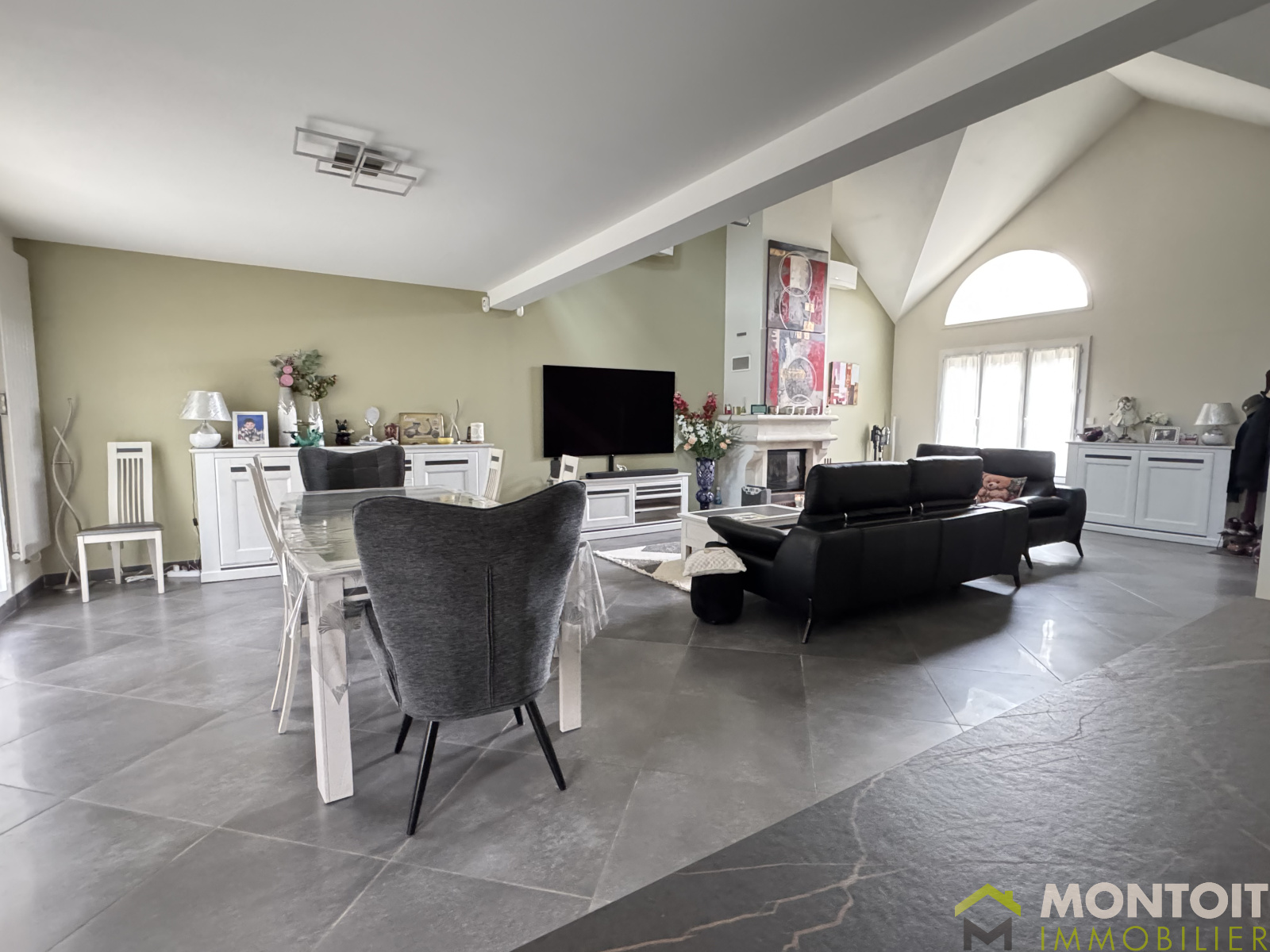 Climatisation, cheminée avec insert, fenêtres en double vitrage PVC, borne électrique dans le garage.