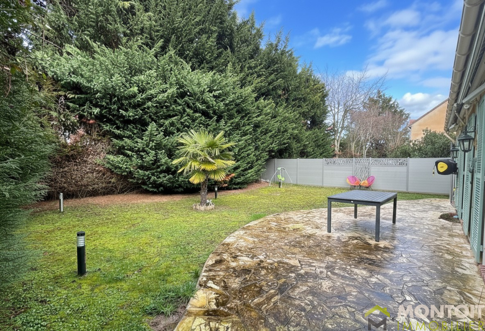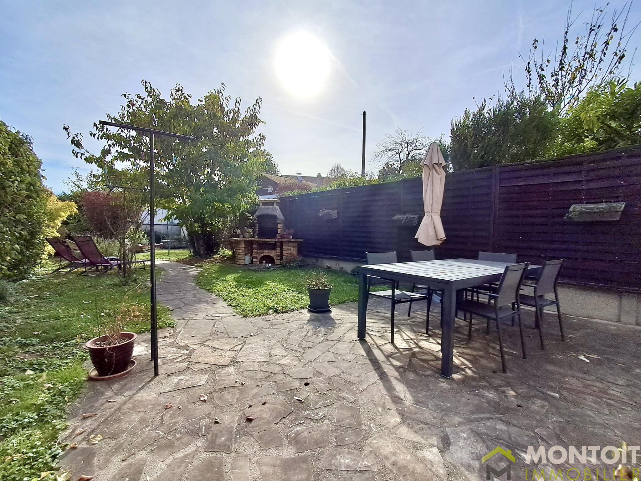 Le jardin arrière se compose d'une terrasse pour recevoir et d'un jardin.
