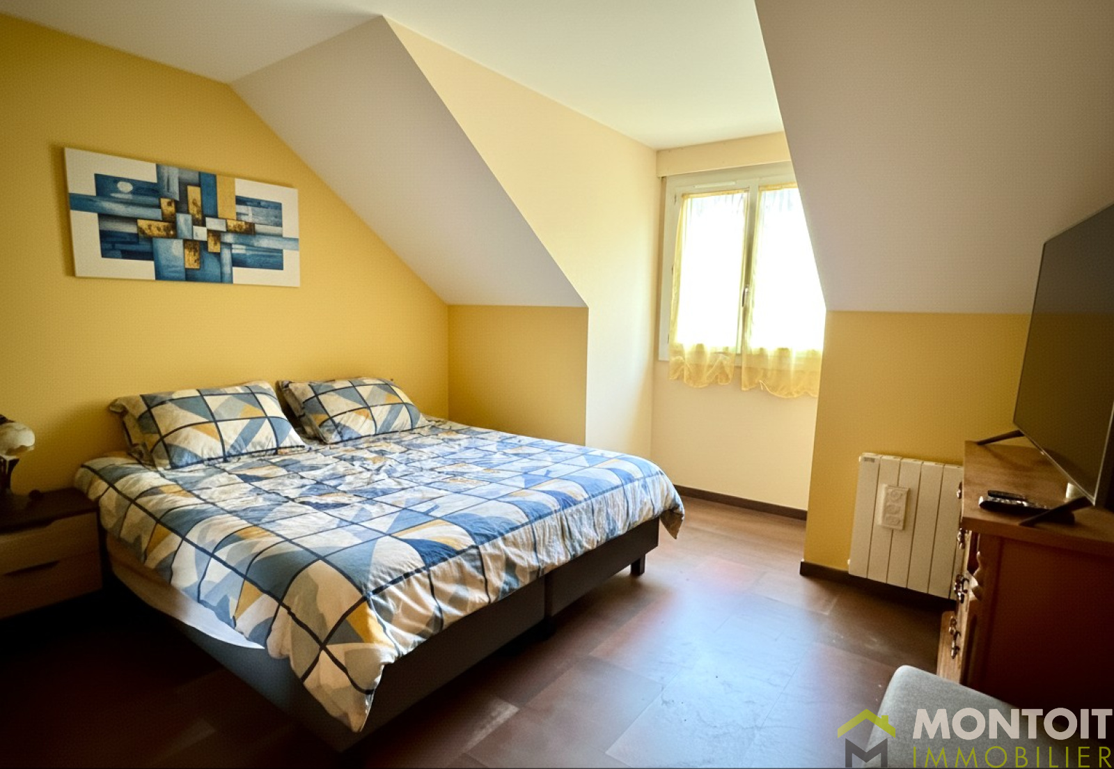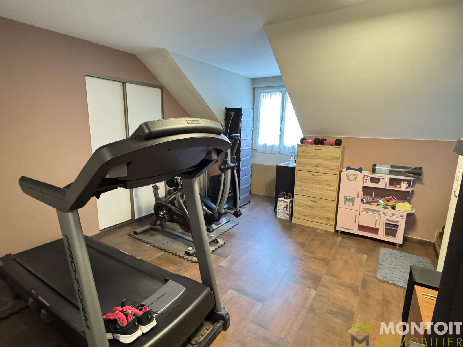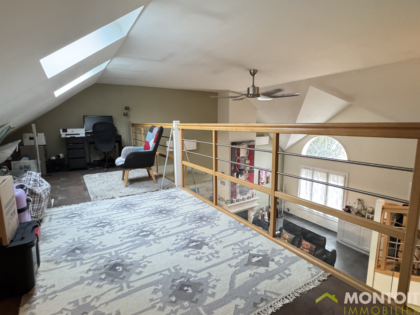À l'étage, un palier avec rangements desservant 1 chambre, 1 pièce avec accès à la mezzanine offrant un espace supplémentaire pour bureau ou coin détente, une salle d'eau et un WC indépendant.