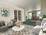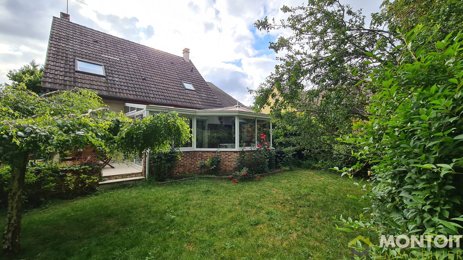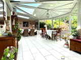 Elle se compose d'une entrée, beau séjour traversant (est-ouest) de 35m² avec cheminée et accès direct sur terrasse, jardin et très agréable véranda de 34m², une grande cuisine séparé attenante avec également accès véranda (possibilité d'ouverture sur salon) permettant un exceptionnel espace de vie de plus de 80m².