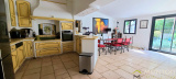 Une entrée avec vestiaire aménagé, un bel espace de vie composé d'un salon avec cheminée (33m²) puis d'un espace repas (27m²) ouvert sur spacieuse cuisine aménagée. L'ensemble offre un accès à la terrasse exposée Sud et Ouest et au jardin, par ses baies vitrées. Toujours en rez-de-chaussée, un wc indépendant et une salle d'eau.