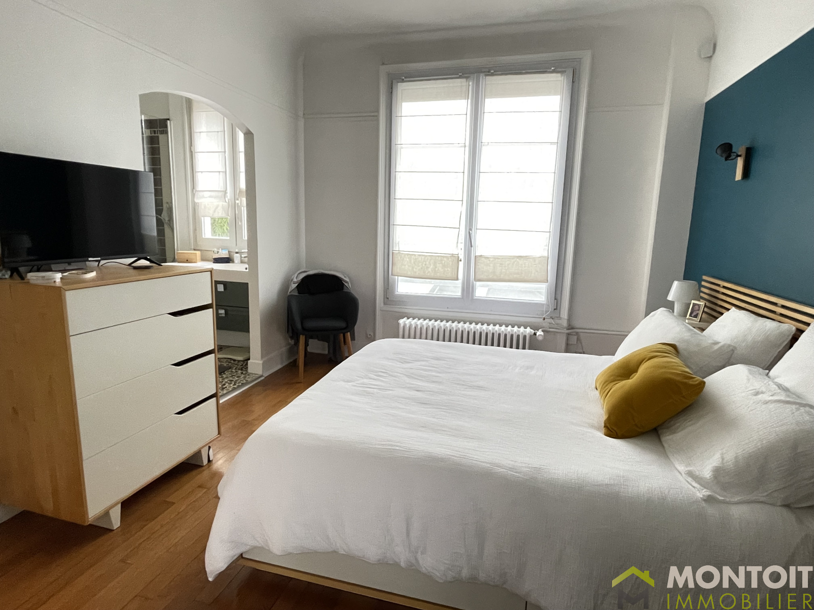 A l'étage, une très belle chambre parentale de presque 30m² avec dressing, bureau, salle d'eau avec douche à l'italienne (possibilité de retrouver 2 chambres de 12m² comme à l'origine), wc indépendant.