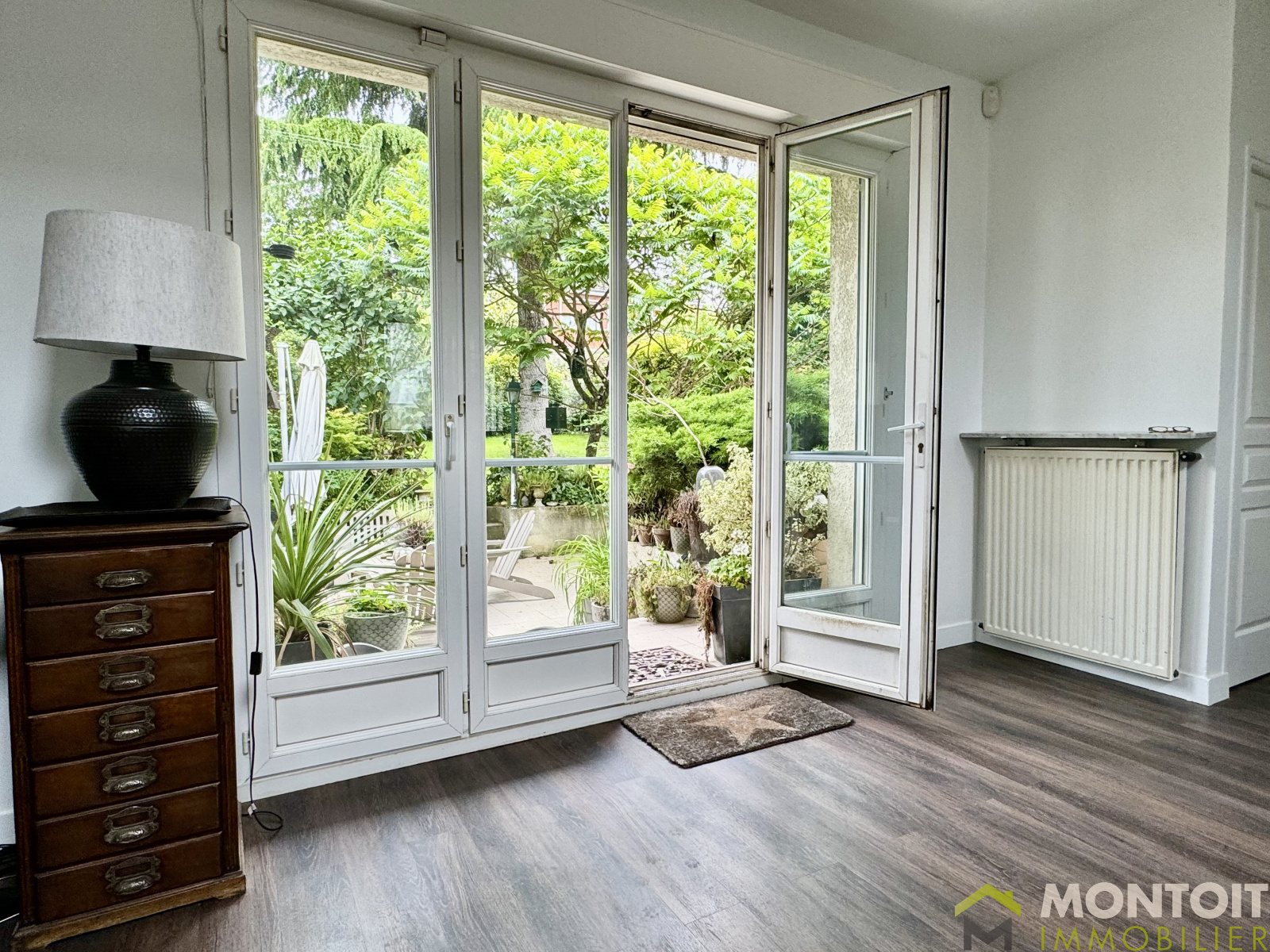 Au rez-de-chaussée surélevé, un espace de vie lumineux et accueillant, avec un agréable grand séjour de plus de 45m² qui s'ouvre sur une belle terrasse ensoleillée et un jardin verdoyant. La cuisine aménagée et équipée, attenante à une salle à manger conviviale, donne également accès à la terrasse et au jardin.