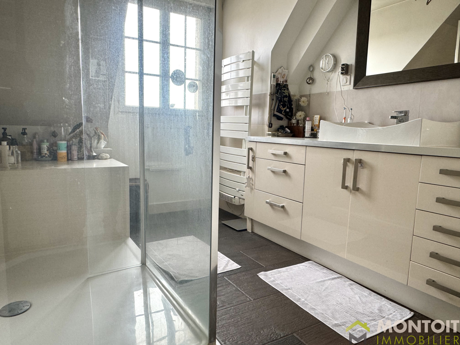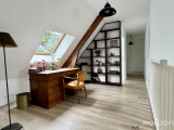 À l'étage, un dégagement spacieux vous conduit vers un coin détente ou bureau. Trois belles chambres, chacune avec son caractère propre, offrent des espaces de repos agréables et lumineux. Un grand dressing, un WC séparé supplémentaire et une grande salle d'eau moderne viennent compléter cet étage, offrant confort et fonctionnalité à toute la famille.