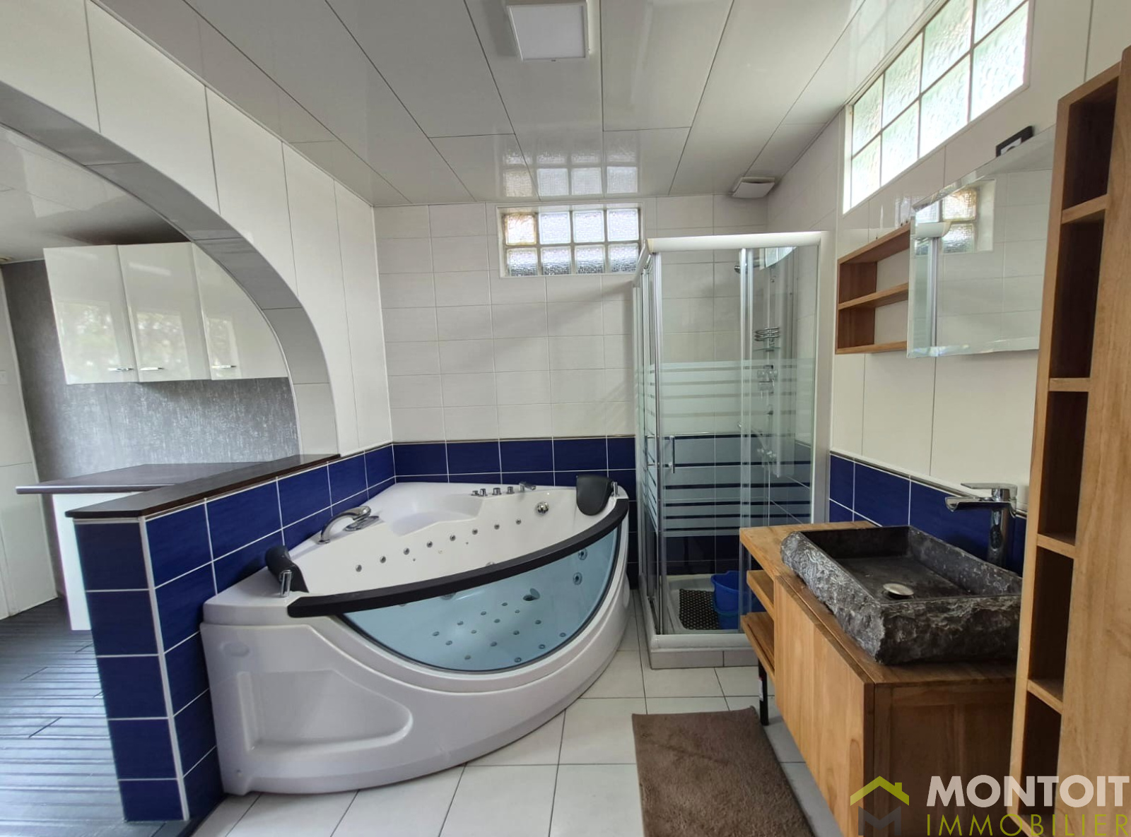 Un garage de 16m² est attenant et une cave de 9m² en sous-sol complètent l'ensemble.