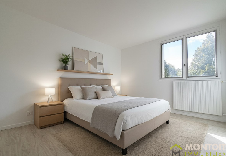 Une entrée avec dégagement et placard intégré, un lumineux séjour d'environ 18m², une cuisine très fonctionnelle, équipée et aménagée, une grande chambre d'environ 13m², une agréable salle d'eau et un wc séparé.